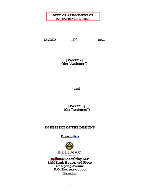Deed of Assignment of Industrial Designs (Applicable in case of affiliated parties)
