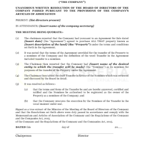 Board Resolutions where a Company is appointing a nominee pursuant to a sale transaction