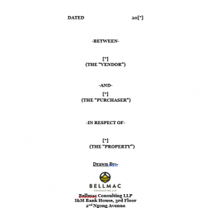 An Agreement for sale of a developed property is an agreement between a vendor and a purchaser detailing the terms and conditions of the sale. An agreement for sale is usually made between individuals to individuals, individual to company, company to company and companies to individuals.