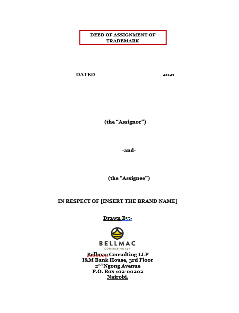 A Deed of Assignment of Trademark is a document through which the registered proprietor of a trademark transfers his/her/its rights, title and interest in the trademark to a third party. This gives the third party the right to use the trademark of the owner.